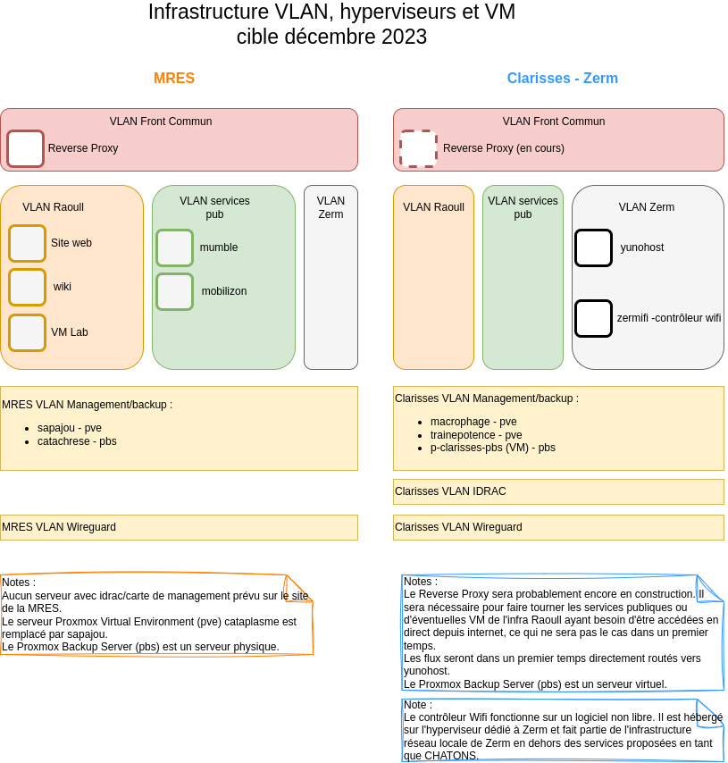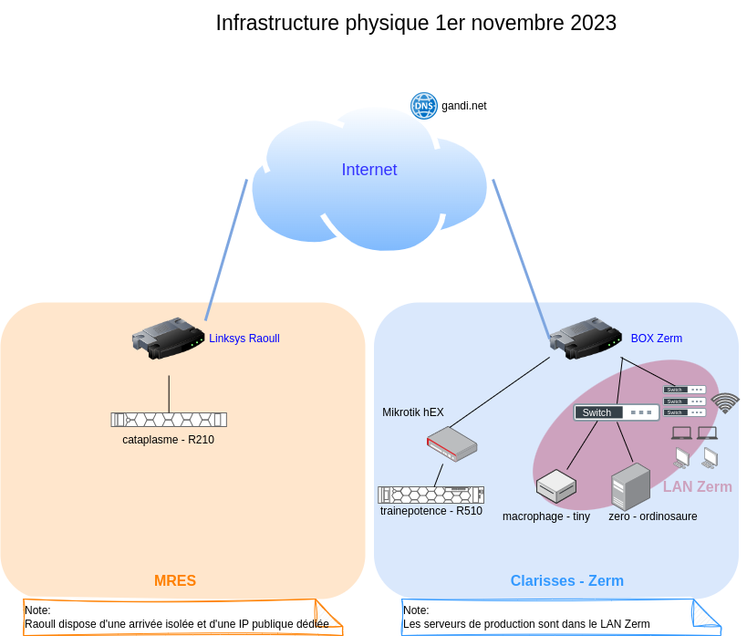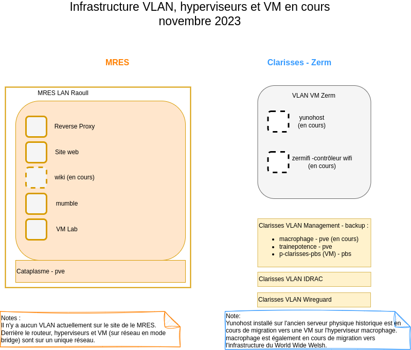 - A droite les VMs de Zerm aux Clarisses dans des VLANs dédiés