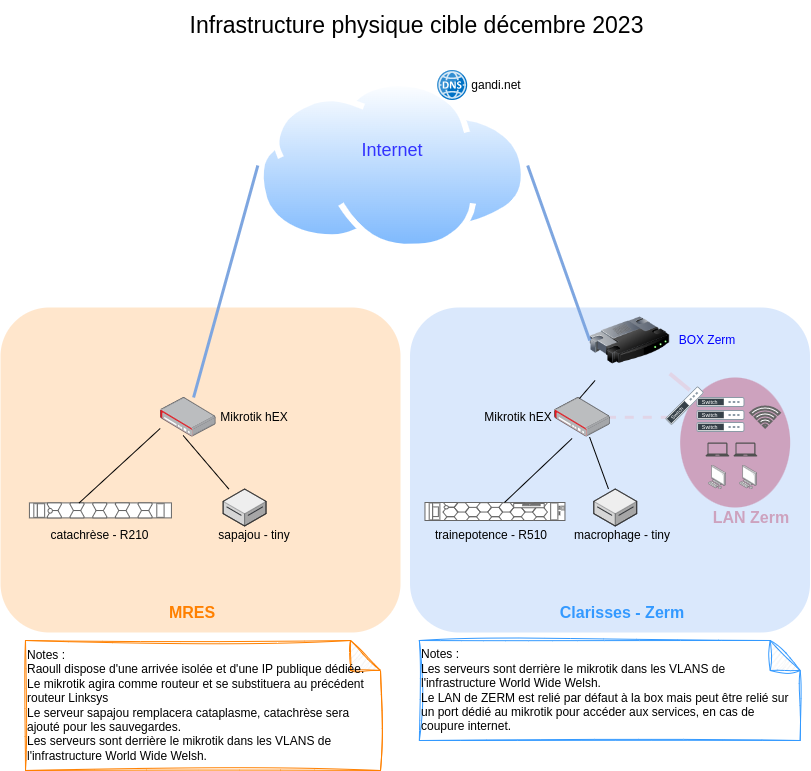 - Les serveurs sont derrière le Mikrotik dans les VLANS de l'infrastructure World Wide Welsh.